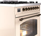 ILVE Nostalgie II 30" Dual Fuel Natural Gas Range, Antique White, Bronze Trim UP30NMPAWB