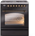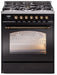 ILVE Nostalgie II 30" Dual Fuel Natural Gas Range, Glossy Black, Bronze Trim UP30NMPBKB
