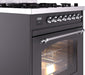 ILVE Nostalgie II 30" Dual Fuel Natural Gas Range, Matte Graphite, Chrome Trim ILVE UP30NMPMGC