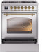 ILVE Nostalgie II 30" Dual Fuel Natural Gas Range, Stainless Steel, Brass Trim UP30NMPSSG