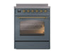 ILVE Nostalgie II 30" Electric Range, Blue Grey, Brass Trim UPI304NMPBGG