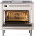 Using two-point heavy-duty metal door hinges means ILVE ovens can withstand up to 55 lbs. loads and close with a reassuring quality clunk.