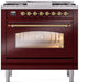 ILVE Nostalgie II 36" Dual Fuel Liquid Propane Range, Burgundy, Brass Trim UP36FNMPBUGLP