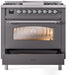 ILVE Nostalgie II 36" Dual Fuel Liquid Propane Range, Matte Graphite, Chrome Trim UP36FNMPMGCLP