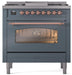 ILVE Nostalgie II 36 " Dual Fuel Natural Gas Freestanding Range in Blue Grey with Copper Trim, UP36FNMPBGP
