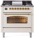 ILVE Nostalgie II 36" Dual Fuel Natural Gas Range, Antique White, Brass Trim UP36FNMPAWG