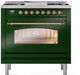 ILVE Nostalgie II 36" Dual Fuel Natural Gas Range, Emerald Green, Brass Trim UP36FNMPEGG
