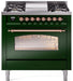 ILVE Nostalgie II 36" Dual Fuel Natural Gas Range, Emerald Green, Copper Trim UP36FNMPEGP