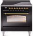ILVE Nostalgie II 36" Electric Range, Glossy Black, Brass Trim UPI366NMPBKG