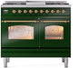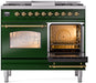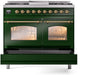 ILVE Nostalgie II 40" Dual Fuel Liquid Propane Range, Emerald Green, Brass Trim UPD40FNMPEGGLP