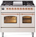 ILVE Nostalgie II 40" Dual Fuel Natural Gas Range, Antique White, Copper Trim UPD40FNMPAWP