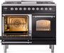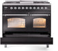 ILVE Nostalgie II 40" Dual Fuel Natural Gas Range, Glossy Black, Chrome Trim UPD40FNMPBKC