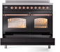 ILVE Nostalgie II 40" Electric Range, Glossy Black, Copper Trim UPDI406NMPBKP