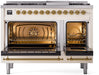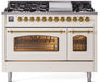 ILVE Nostalgie II 48" Dual Fuel Liquid Propane Range, Antique White, Brass Trim UP48FNMPAWGLP