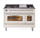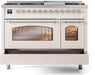 ILVE Nostalgie II 48" Dual Fuel Liquid Propane Range, Antique White, Chrome Trim UP48FNMPAWCLP