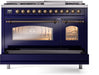 ILVE Nostalgie II 48" Dual Fuel Liquid Propane Range, Blue, Bronze Trim UP48FNMPMBBLP