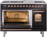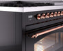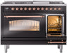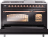 ILVE Nostalgie II 48" Dual Fuel Liquid Propane Range, Glossy Black, Copper Trim UP48FNMPBKPLP