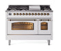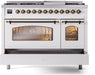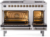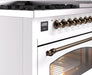 ILVE Nostalgie II 48" Dual Fuel Liquid Propane Range, White, Bronze Trim UP48FNMPWHBLP