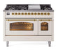 ILVE Nostalgie II 48" Dual Fuel Natural Gas Range, Antique White, Brass Trim UP48FNMPAWG