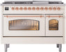 ILVE Nostalgie II 48" Dual Fuel Natural Gas Range, Antique White, Copper Trim UP48FNMPAWP