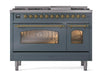 ILVE Nostalgie II 48" Dual Fuel Natural Gas Range, Blue Grey, Brass Trim UP48FNMPBGG