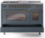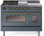 ILVE Nostalgie II 48" Dual Fuel Natural Gas Range Blue Grey Brass Trim UP48FSNMPBGG