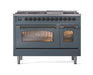 ILVE Nostalgie II 48" Dual Fuel Natural Gas Range, Blue Grey, Bronze Trim UP48FNMPBGB