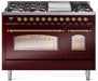ILVE Nostalgie II 48" Dual Fuel Natural Gas Range, Burgundy, Brass Trim ILVE UP48FNMPBUG