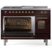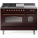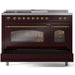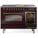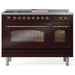 ILVE Nostalgie II 48" Dual Fuel Natural Gas Range Burgundy Brass Trim UP48FSNMPBUG