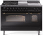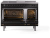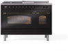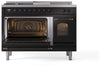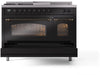 ILVE Nostalgie II 48" Dual Fuel Natural Gas Range Glossy Black Bronze Trim UP48FSNMPBKB