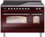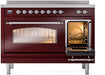ILVE Nostalgie II 48" Electric Range, Burgundy, Chrome Trim UPI486NMPBUC