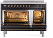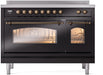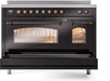 ILVE Nostalgie II 48" Electric Range, Glossy Black, Bronze Trim UPI486NMPBKB
