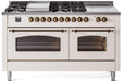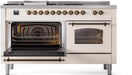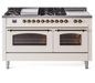 ILVE Nostalgie II 60" Dual Fuel Liquid Propane Range, Antique White, Bronze Trim UP60FSNMPAWBLP