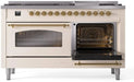 ILVE Nostalgie II 60" Dual Fuel Natural Gas Range, Antique White, Brass Trim UP60FNMPAWG