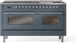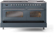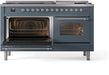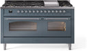 ILVE Nostalgie II 60" Dual Fuel Natural Gas Range, Blue Grey, Chrome Trim UP60FNMPBGC