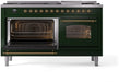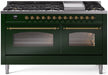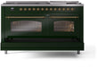 ILVE Nostalgie II 60" Dual Fuel Natural Gas Range, Emerald Green, Brass Trim UP60FNMPEGG
