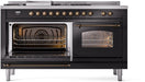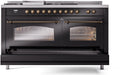 ILVE Nostalgie II 60" Dual Fuel Natural Gas Range, Glossy Black, Bronze Trim UP60FSNMPBKB