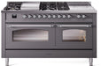 ILVE Nostalgie II 60" Dual Fuel Natural Gas Range, Matte Graphite, Chrome Trim UP60FSNMPMGC