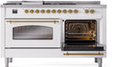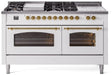 ILVE Nostalgie II 60" Dual Fuel Natural Gas Range, White, Brass Trim UP60FSNMPWHG