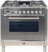 ILVE Professional Plus 36" Dual Fuel Liquid Propane Freestanding Range, Stainless Steel, Chrome Trim UPW90FDMPILP