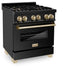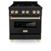 ZLINE 30" Autograph Dual Fuel Range, Black Stainless, Gold, RABZ-30-G