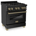 ZLINE 30" Dual Fuel Range, Black Stainless, Champagne Bronze, RABZ-30-CB