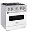 ZLINE 30" Dual Fuel Range, Gas Cooktop, Electric Convection Oven Stainless Steel, White Matte Door CDR-WM-30