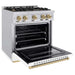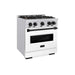 Luxury isn’t meant to be desired - it’s meant to be attainable. The ZLINE Autograph Edition 30 in. 4.2 cu. ft. Classic Dual Fuel Range with 4 Burner Gas Cooktop and Electric Convection Oven in Stainless Steel with White Matte Door and Matte Black Accents (CDRZ-WM-30-MB) combines the elegance of a hand-finished porcelain gas cooktop with 4 Italian-made auto-reignition burners, an electric convection oven with an energy-efficient cooling fan to ensure quiet operation, a beautiful white matte door with a Landscape window design, and stunning champagne bronze knobs and handle allowing you to master every meal. With a modern, timeless style and refined functionality, ZLINE Classic Dual Fuel Ranges are masterfully crafted to deliver an elevated culinary experience.