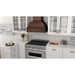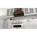All ZLINE range hoods come equipped with everything needed to easily install and use, including a 24-inch chimney with crown molding. This hood will fit most ceilings up to 9.5 feet, though the chimney is designed to be cut to fit lower ceilings. For ceilings between 9.5 and 12.5 feet, a 61-inch chimney extension is available for purchase.