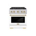 ZLINE 30"Paramount Dual Fuel Range DuraSnow® White Matte, Champagne Bronze SDRSZ-WM-30-CB