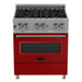 ZLINE 30"Professional Dual Fuel Range Snow Stainless, Red Matte Door, RAS-RM-30