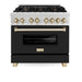 ZLINE 36" Autograph, Dual Fuel Range, Black Door, Gold, RASZ-BLM-36-G