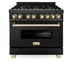 ZLINE 36" Autograph Dual Fuel Range, Black Stainless, Gold, RABZ-36-G