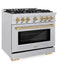 ZLINE 36" Select Dual Fuel Range Gas Cooktop Electric Convection Oven DuraSnow® Stainless Steel Champagne Bronze HDRSZ-36-CB